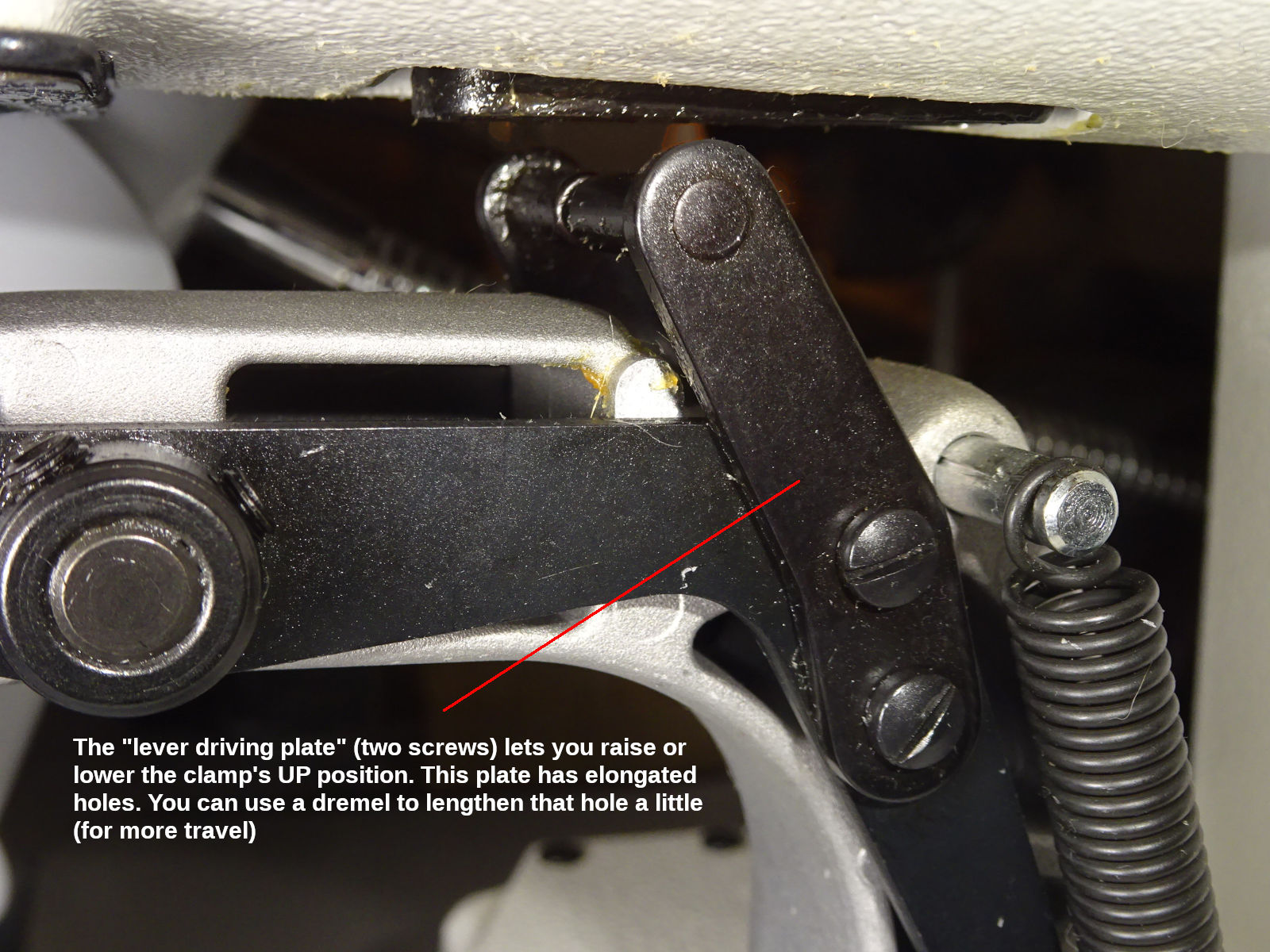 I only mention this to show how there are more possibilities depending on how far you want to go. (FYI: There's also a shaft adjustment under the machine's top cover to adjust the clamp's UP height. See the engineer manual (pgs 26-27).