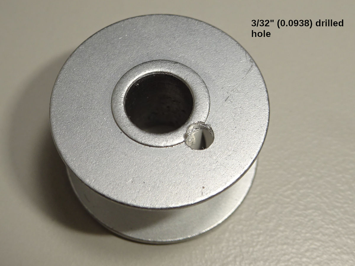 For winding the bobbins, it works better to drill a 3/32 (0.0938) hole in one side of the bobbin, near the center hole: