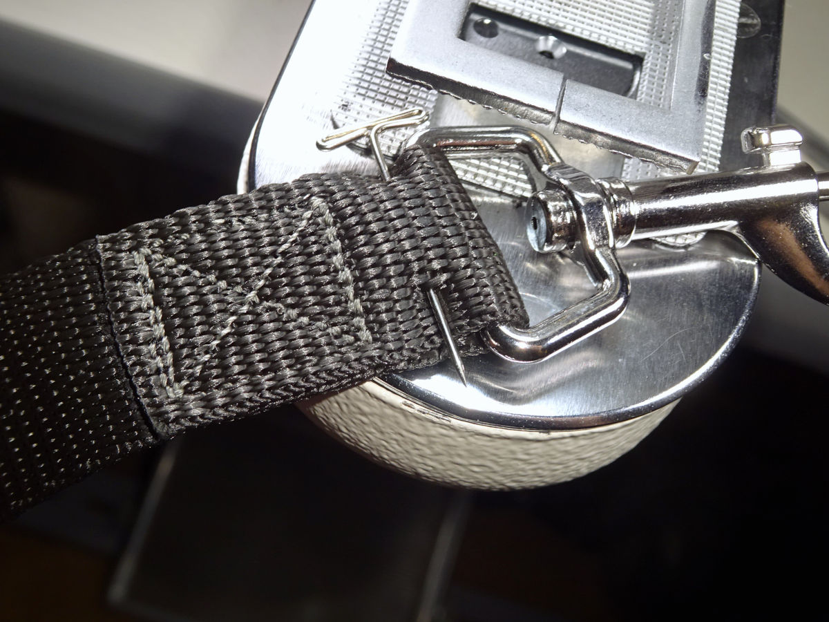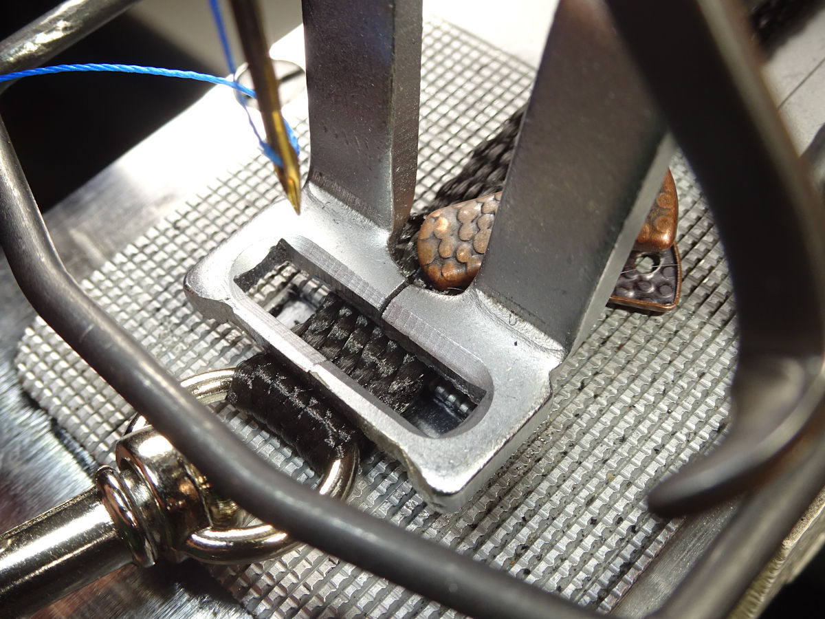 That last point (about clamping too close to the buckle or ring) caused me to grind some of the face off the 3/4" clamp (seen below). I'm tempted to do that with this 1-1/2" (40mm) clamp too. If it was half as thick in the front, I could sew a little closer to the buckle and ring. A tiny amount, but I feel like it could be better. The clamps I bought were inexpensive. It wouldn't hurt to try it. (I wouldn't do this with the 1" clamp the machine comes with. Original Juki parts are expensive.).